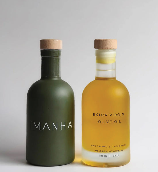 IMANHA Extra Virgin Olive Oil is made from cold-pressed early-season olives in Valle De Guadalupe, Baja California. Processing as soon as the olives are harvested preserves the naturally high amounts of antioxidants and results in a bright, lemony, buttery, light-pungent oil.